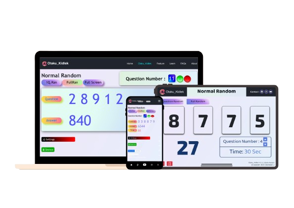 เนื่องจากเว็บไซต์ Otaku Kidlek ถูกพัฒนามาเพื่อ การฝึกซ้อมเท่านั้น ด้วยทุนเดิม โดยทางโปรแกรมจะเน้นการสุ่มโจทย์ที่แตกต่างและไม่ซ้ำใครเพื่อจำลองสถานการณ์การสุ่มโจทย์ ณ วันแข่งจริง ให้ได้มากที่สุดเพื่อเตรียมความพร้อมก่อนแข่งมากที่สุด จึงเน้นระบบไปที่การสุ่มเลขเป็นส่วนใหญ่